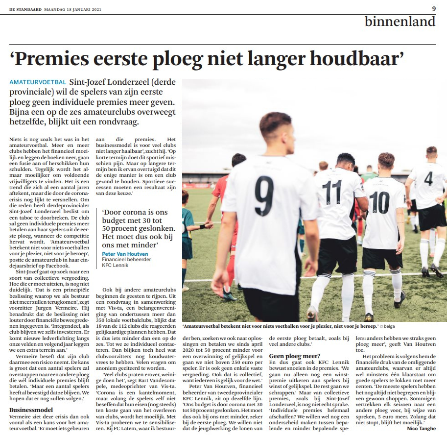Op 5 augustus 2020 lanceerden we met Vis-ta! een petitie om lokaal voetbal snel te kunnen heropstarten op lokaal niveau, per provincie, en volgens de covid-19 regels. Op 12 augustus hadden 203 clubs de petitie ondertekend. Dit vormde de basis van gesprekken met het Kabinet van Vlaams Minister voor Sport Ben Weyts, en Voetbal Vlaanderen. U kan de petitie hier downloaden op deze website.